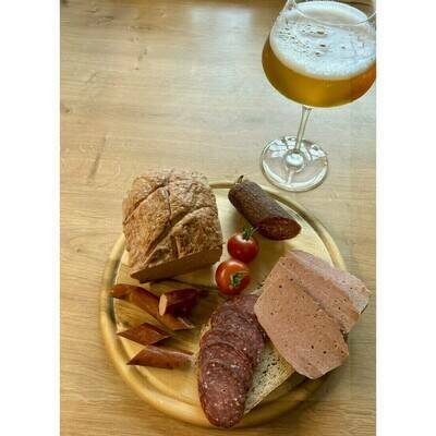 Zutaten: Rindfleisch, Trinkwasser, Salz, Konservierungsstoff (E250), Stabilisator (E450), Dextrose, Säureregulator (E575), Antioxidationsmittel (E300, E301), Geschmackverstärker (E621), Säurungsmittel(E330), Sacharose, Gewürzextrakte